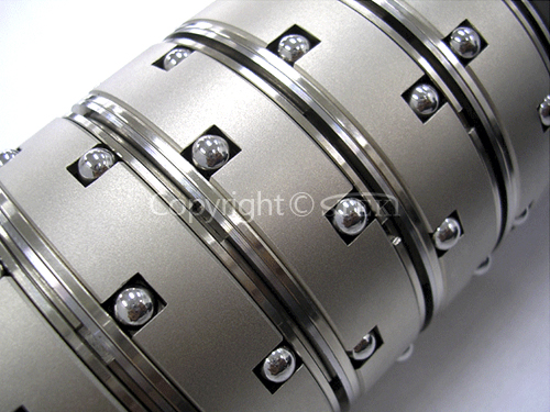 产品本体由镀铬钢或硬氧化铝制作,摩擦条可用聚氨酯、聚乙烯或橡胶材料制作,具体依据最大张力要求而定。