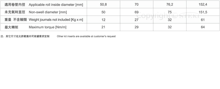 滑差式气胀轴生产 技术参数 单位:mm